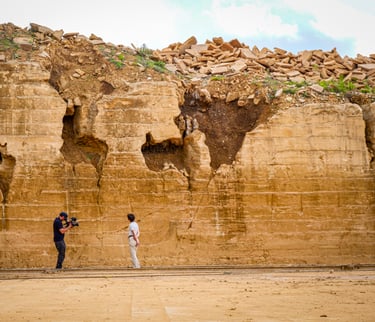 Avant même que l’objectif ne se tourne vers la pierre et ceux qui la façonnent, nous avons découvert un autre monde : celui du tournage. Nous sommes entrés dans des coulisses régies par d’autres règles, d’autres rythmes, d’autres outils, un univers différent du nôtre, mais finalement pas si éloignée de l’esprit d’un chantier.