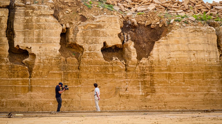 Moment de tournage dans une carrière de calcaire tendre proche de Koutaïssi.